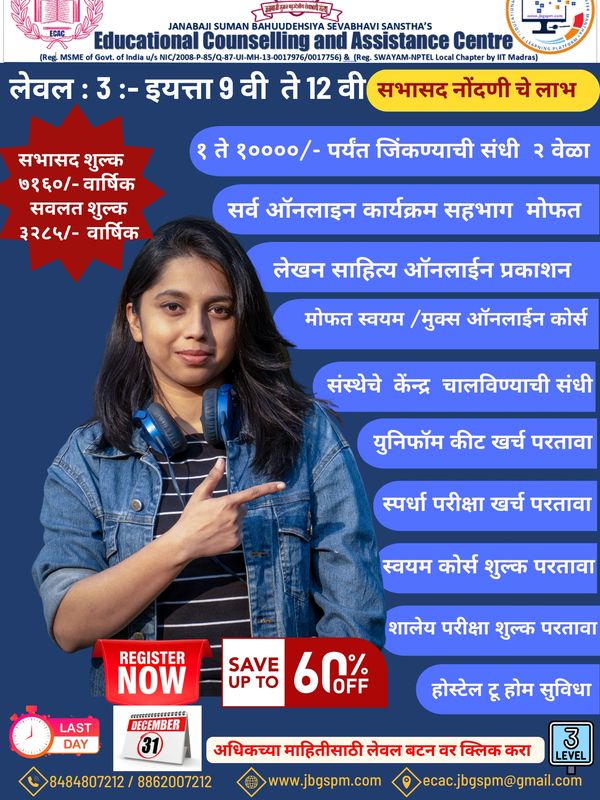 सभासद लाभ पुढील प्रमाणे असतील (ECAC नियमानुसार) लेवल ३ : ९ वी ते १२ वी